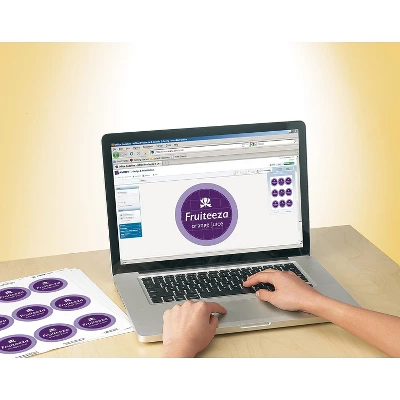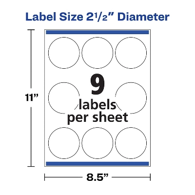 - Easily customize your white round labels with free templates and designs on the Avery site; label sheets are compatible with laser and inkjet printers.