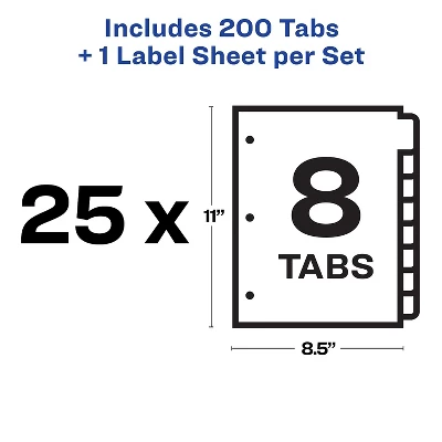 - Label all 8 tab dividers at once with the Index Maker Easy Apply Label strip that results in 25 perfectly aligned sets of tabs. White paper dividers with contemporary colors tabs. Durable and tear resistant; sturdy index dividers feature doubled-sided reinforced tabs and edges to help resist tearing. 25 sets per box.
