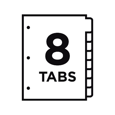 Create custom, professional folders with this 25-pack of Avery Index Maker eight-tab contemporary colors print and apply dividers. Easily create print shop quality personalized binder dividers with tabs using Avery Index Maker Clear Label Dividers. Customize the title tabs for your dividers quickly and easily using the free templates on the Avery website and print with your inkjet or laser printer for clean, professional looking results in minutes. This pack comes with 25 sets of 8-tab dividers, and the Easy Apply clear label strips make it simple to apply all 8 labels of each set at once. Just print, align labels against tabs, smooth down labels and peel up strip. The white binder dividers feature an assortment of pastel colored tabs for eye-catching convenience when you’re looking for the right section. Each 3-hole punched durable divider also features doubled-sided, reinforced tabs and edges to help resist tearing for long-lasting, everyday use. These 3 ring binder dividers with tabs are a great addition to your medical office supplies, school binders, personal organizers, tax office supplies, presentation reports and more. Print, peel, and press your way to a perfect, precise project. Find binder sections easily with white tabbed dividers featuring pastel colored tabs perfect for color coding and quick referencing. Save time and money by creating your own high-quality custom tab dividers using free templates from the Avery website and printing on your laser or inkjet printer. Label all 8 tab dividers at once with the Index Maker Easy Apply Label strip that results in 25 perfectly aligned sets of tabs. Get a professional, printed-on look with clear labels that virtually disappear on the pastel divider tabs. Great for organizing your medical document binder, meeting materials, proposals, tax organizer binder, financial planner and more. Tab dividers let you organize projects, personal documents, and more. White paper dividers with cont..