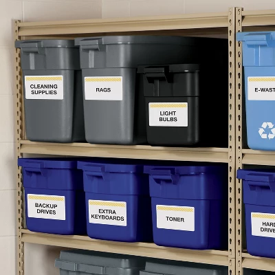 - TrueBlock label material blocks out text, designs and colors underneath the label allowing you to easily reuse boxes.