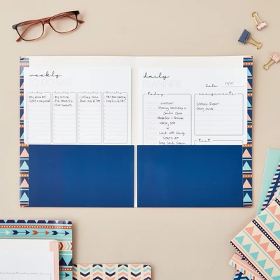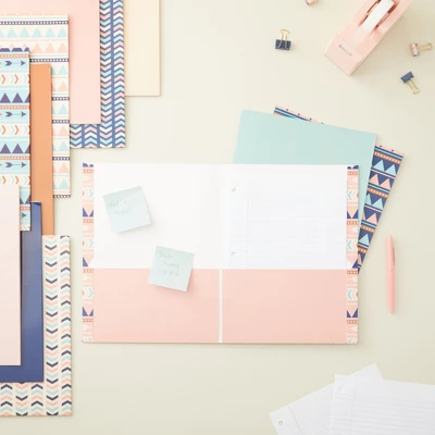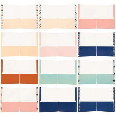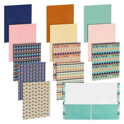 Blue Panda 12 Pack Geometric 2-Pocket Folders, Letter Size Decorative Folders With Pockets For Office, School, 6 Designs, 6 Solid Colors, 9.25 X 12