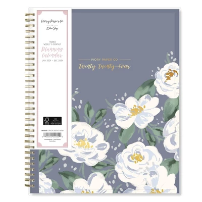 Mindfully organize your days with the 2024 Ivory Paper Co for Blue Sky Weekly Monthly Planner, featuring a clear pocket cover to display photos or artwork. Use weekly layouts with checklists, tabbed monthly views that include habit trackers, and unique pages for goals and gratitude to become your best self in 2024. Ivory Paper Co is a Black-owned planner and stationery brand based in Columbus, Ohio.