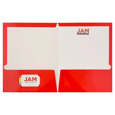 JAM Paper Glossy Folders are made out of 100lb card stock and measure 9 x 12 inches each. All of our folders are long-lasting and durable, the perfect fit for your never ending duties. These professional pockets will let your company conventions, your practical presentations; even your handmade home projects stay protected This pack contains 6 folders. These folders each have two pockets on the inside to help you keep your documents safe and organized.