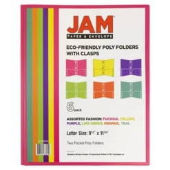 JAM Paper Heavy Duty Folders are made out of smooth and durable plastic and measure 9 x 12 inches in size. Strong and durable, you will never have to worry about losing any important papers! See the difference these folders can make at your work or school presentations! This pack contains a total 6 folders. Each one has two pockets on the inside to help you protect and organize your documents.