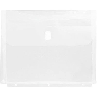JAM Paper® Letter Booklet Plastic Binder Envelopes with certified Hook & Loop Closure and 3 Hole Punch are 9.75 x 13 inches in size and have a 1-inch expansion. Each one has 3 binder rings in the bottom spine so that it can be easily placed and kept in a standard sized binder, keeping you organized daily.