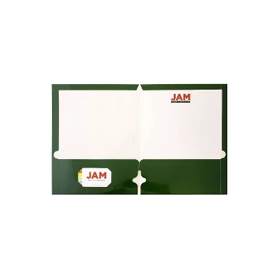 JAM Paper Glossy Folders are great for keeping your documents and notes sorted and protected. Are you green with envy over all of the fantastic folders that your friends or co-workers have? Show them up and be the best with these glossy green folders! JAM Paper Green Glossy Two Pocket 3 Hole Punched Presentation Folders are made out of 100lb cardstock and measure 9 x 12 inches, making them ideal for all standard sized sheets of paper. Each one features two pockets on the inside. The left-side pocket includes a four-cornered business card slot. This pack includes a total of 25 folders! On the left side of each one, there are three holes for placing and securing them into binders. The deep green color and glossy finish of these folders bring some personality to your work space! Green glossy with 3 hole punch. 3 hole punched for 3 hole punched paper. Two pocket presentation folder. 25 folders per box. Sold as 25/Pack.