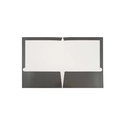 - Grey glossy folders. Includes 2 pockets to keep your documents secure and a business card slot on the left pocket. These folders are perfect for helping you stay organized at school, the office, home, or on the go.