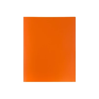 Jam 2-Pocket school folder in orange color is designed to store/organize office or home documents and has smooth finish, sold as 96 per pack. JAM Paper Orange Plastic Eco Two Pocket Presentation Folders are made out of innovative , earth-friendly, plastic and have a smooth, pliable texture. This large pack comes complete with a total of 96 folders! Each one measures 9 x 12 inches, providing enough room for up to 20 standard sized documents. Each one has two pockets on the inside with a business card slot in the right side pocket. Their striking orange color helps them stand out among the rest of your school or office supplies to help you find your stored documents quickly and easily! Maximize your organization, brighten up your space, and be kind to the environment with these orange folders!. Orange. Size: 9″ x 12″. Usage: Folders are perfect for helping you stay organized at school, the office, home, or on the go. Material: Plastic. Finish: Smooth. Folder plastic weight: Lightweight. Folder pocket quantity: 2. Comfortably holding standard letter size paper (8-1/2″ x 11″). Folders include 2 pockets and an additional business card slot on the right side pocket. folders. Comfortably holding standard letter size paper (8 1/2″ x 11′). Sold as 96/Pack.