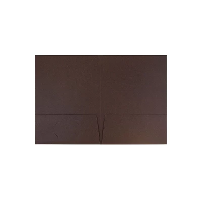 JAM Paper Folders are great for storing, transporting, and organizing all of your documents and notes! Looking for something classy and sweet to store and carry your notes and documents? JAM Paper Chocolate Brown Linen Two Pock Presentation Folders are made out of 100lb card stock and measure 9 x 12 inches inside, making them ideal for standard sized sheets of paper. This pack includes a total of 25 folders. Each one has two pockets on the inside and a business card slot within the left side pocket. These folders feature a dark chocolate brown color and a refined linen texture that looks fantastic on the shelves in your office or within your bag or briefcase as they keep papers secure and orderly while being carried. Two Pocket Folder. Made with sturdy chocolate brown linen cardstock. 9″” x 12″”. Safety Data Sheet. Sold as 25/Pack.