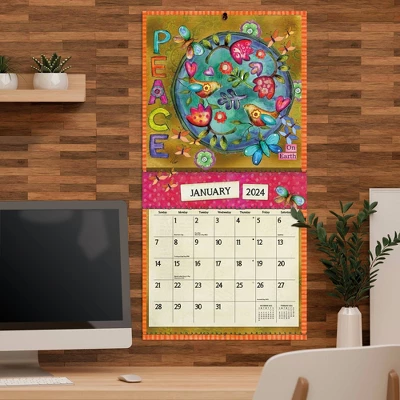 The Embrace The Day 2024 Wall Calendar features monthly artwork by Lisa Kaus of whimsical settings through each season paired with uplifting words of inspiration. Wells St. by LANG Wall Calendars feature monthly full color images based on hand-painted originals, elegant linen-embossed paper stock, and a brass grommet for hanging.