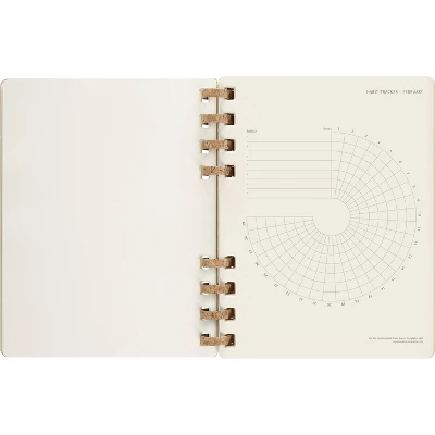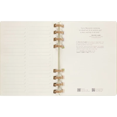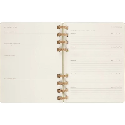 There are also pages to map and track monthly objectives; perforated task lists; pages for note-taking and brainstorming; and an end-of-year review section. Customizable monthly habit trackers and a weekly creative corner focus on wellness and self-care.