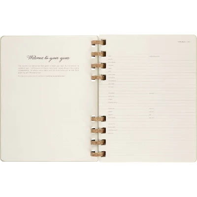 Each month begins with a monthly calendar to map out long-term events and projects, while each week is shown at a glance across two pages for day-to-day details, to-dos and ideas.