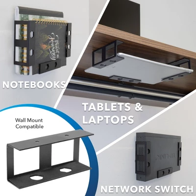- Fits laptops and other devices such as tablets, modems, cable boxes, and small game consoles up to 1.5″ high