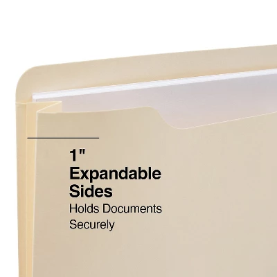 Store project documents in one place with this manila 1-inch expanding file jacket. Keep important documents safe by storing them inside of this expanding file jacket. This jacket expands to a width of 1 inch, making it easy to store small to medium batches of project files. In addition to their full-height gussets, these file jackets have a thumb notch in front that makes it easy to leaf through the contents of the file without having to take anything out. Comes in manila color and made of paper stock. File jackets are made from card stock, constructed to protect documents. Letter size to keep all standard-size documents and files organized and protected. Comes in a carton of 50. Keep your paperwork in one place with this expanding file jacket. File your paperwork with the ease of a manila folder, but the efficiency of a sophisticated filing system. Each manila file jacket expands to 1-inch, allotting you plenty of space to hold all of your important letter-sized documents. The front of each jacket is notched at the top, letting you find and open the correct jacket efficiently when you have multiple jackets stored in the same file.Expands to 1 Inch DepthThis file jacket expands to a 1 inch depth to accommodate all of your documents, paperwork and small desktop items such as pens and dividers. The accordion-style folded sides shrink or expand according to the items that you keep inside the jacket. Keep just a few papers securely inside the jacket, or keep dozens of documents just as safely. Notched Fronts for Easy NavigationEach letter-size expanding file jacket features a notch in the front center, allowing you to navigate multiple jackets quickly and easily access the contents. Use multiple jackets in the same file folder or cabinet and leaf through your documents with ease. A full-height gusset keeps the jacket secure through regular handling and access. Comes in manila color and made of paper stock. File jackets are made from card stock, constructed to pro..