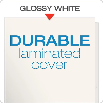 - Laminated folders are made of high-quality glossy white paper stock for extra durability. 100-sheet capacity allows for convenient organization of loose papers. High gloss finish.