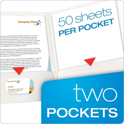 Hand out materials for presentations or conventions in these Oxford high-gloss laminated white portfolios. Deliver cleanly organized packets of information by using these laminated portfolios that hold up to 50 sheets of letter-sized papers per pocket. The left pocket on these portfolios features a die-cut business card holder, so contact information is readily available. The high-gloss finish of these Oxford laminated portfolios helps protect the folders and their contents from dirt and liquids. Laminated folders are made of high-quality glossy white paper stock for extra durability. Features two pockets to store papers, brochures, and more. Holds standard letter-size papers. Business card holder adds an extra professional touch to each folder. 100-sheet capacity allows for convenient organization of loose papers. 25 folders per box. High gloss finish. Sold as 25/Box.