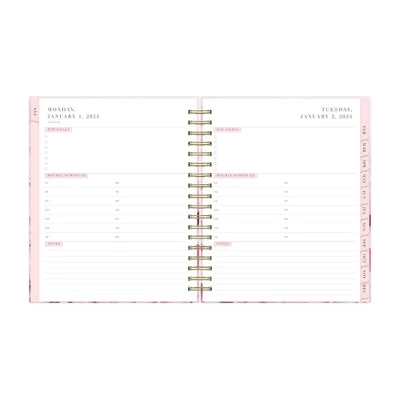 The 2024 Daily Planner from Rachel Parcell for Blue Sky has a pink floral hardcover, gold details, and a storage pocket to keep you organized. Plan each day on hourly, vertical calendars that offer plenty of room for notes, lists, and reminders, and use dedicated pages for your contacts, important dates, and yearly goals to plan with certainty. Elegant, chic, and distinctly feminine, the Rachel Parcell for Blue Sky Daily Planner adds a romantic touch to your workday routine.
