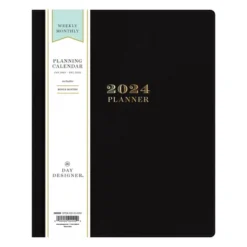 Day Designer 2024 Planner 8″x10″ Weekly/Monthly Faux Leather Black