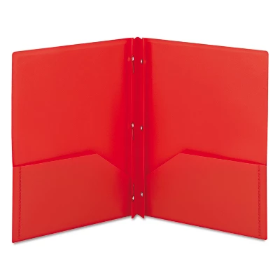 Durable polypropylene two-pocket folders are perfect for all types of presentations, proposals and projects. They allow for easy storage and transport while keeping the documents organized and easily accessible. The large pockets holds up to 50 sheets each. Metal fasteners hold up to 80 three-hole punched papers. Inside back pocket is die cut to hold a business card. Durable poly material is tear proof and moisture resistant. Put your best foot forward with Smead presentation folders. Our selection of presentation products includes attractive report covers, pad folios and pocket folders. Color: Red. Size: Letter. 25/Box. Perfect for presentations, reports and projects. Two 4-1/2″ high pockets hold up to 50 sheets each. Tang fasteners hold up to 80 3-hole punched sheets. Die cut business card holder on inside back pocket. Durable poly material is tear and water resistant and easy to clean. This product is manufactured by a certified WBE (women owned business). Business card holder. Sold as 25/Box.