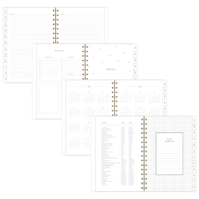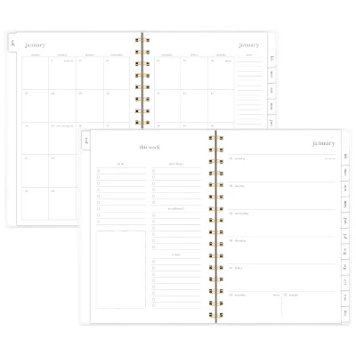 Stay organized and keep track of goals, important dates and more with a planner from Sugar Paper Essentials exclusively for Target. Each weekly spread has open planning space for each day on the right side and lists on the left. Tabbed monthly spread offers unruled daily blocks and sections for personal, health, work and financial goals, plus important dates. Expand your organizational skills with bonus pages that include stickers, a holiday list, notes page, bucket list, 2-page reference calendar and storage pocket. Planner has a durable poly pink cover and gold twin wire binding.