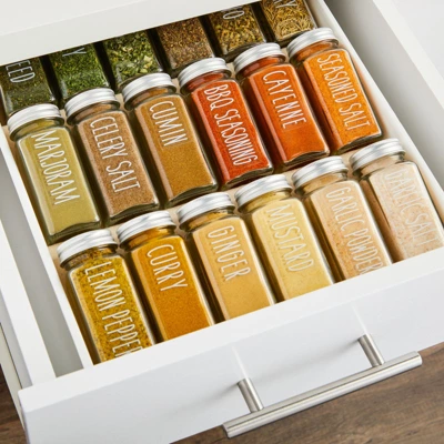- Package Contents: You will receive 145 spice jar labels in a white all-caps font with 132 preprinted spice labels, 7 number decals, 6 ampersands (&), and an alphabetized label name list