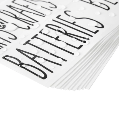 - Organization Stickers: The labels for organizing are printed on water-resistant, transparent vinyl with an adhesive backing that won’t easily peel off tear; remove or replace as needed
