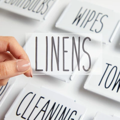 - All Caps Lettering: Forget messy handwriting; our removable bin labels for storage bins feature all-caps black font on a clear background for quick identification of everyday household essentials