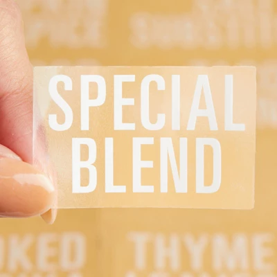 - No Messy Handwriting: These minimalist spice labels feature bold white all caps font preprinted on water-resistant, clear vinyl with a self-adhesive backing that can easily be removed