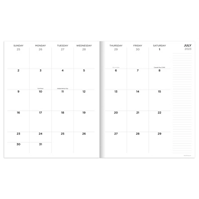 Stop and smell the flowers with our 9″ (w) x 11″ (h) academic year monthly planner featuring a lovely goldenrod cover design. This 2023-2024 planner has 12 monthly views, July 2023 – December 2024, each spanning two pages. The extra-large grids provide ample room for all of your important information and additional monthly pages for events, appointments, and notes. Bonus pages include yearly views of 2023 and 2024 and lined notes. The premium, textured cover is pliable, yet durable and lays flat. This item is plastic-free and fully recyclable!
