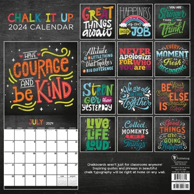 Chalkboards aren’t just for classrooms anymore! Inspiring quotes and phrases in beautiful chalk typography will be right at home on any wall – minus the sound of nails on a chalkboard! This 2024 12-month wall calendar measures 12″ x 12″ (12″ x 24″ open) and includes thirteen color-popping, chalk-style designs combined with monthly calendar grids and a bonus 4-month view of January 2025 – April 2025. Printed on premium matte paper that works great with either a pen or pencil.