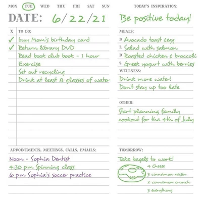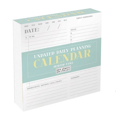 Plan as you desire and customize your daily schedule with this open dated, daily planning calendar. Each tear-off page has a dedicated spot to write-in the date, day and your own daily inspiration. Daily pages also have lines for optimal and neat lists with sections for To Dos, Meal Planning, Appointments and Tomorrow plans. This daily desk calendar is 5.5″ x 5.5″ and comes with an attached, paper board easel to prop on your desk, lay flat, stand up on end. The daily pages, 365 in total, are a clean white with black lines and lettering on the front and the reverse side is lined for notes. Calendar comes packaged in a thick stock carton.