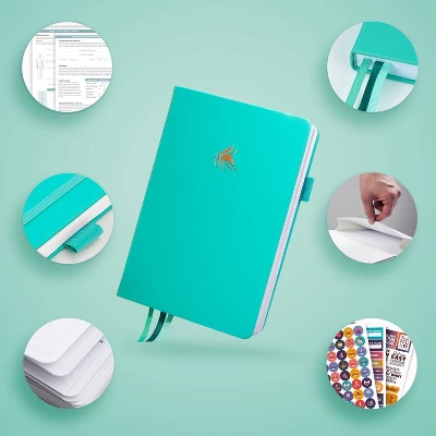 This weekly planner has a standard A5 size, a premium-quality leather cover, and thick bleed- and smudge-resistant 120gsm paper pages. It has an inner pocket, 6 colorful planner stickers sheets, three colorful ribbon bookmarks, an elastic band, and an illustrated user guide.