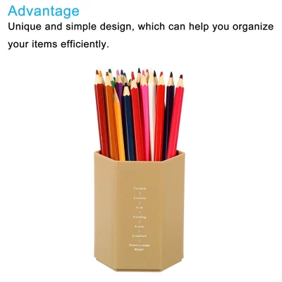 This pencil holder can help you organize various items on your desktop, not only plays a practical role in use but also brings a lot of convenience to your work or life.It is perfect to store pens, pencils, sticky notes, stationery items, makeup brushes, office or home supplies, and so on.It is made of plastic material, fine workmanship, wear-resistant, sturdy, and durable.A simple hexagonal design does not take up space and allows you to hold different items efficiently.Comes with a bottom groove, so you can stack the pencil holder for convenient use.Easy to use.Put the items you need to organize into the pen holder and help Make your desk tidy!Before placing the order, please confirm the pen holder size and style.