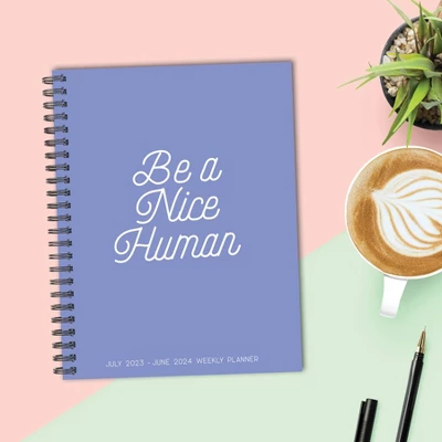 This large-format 8.5”x 11” softcover Academic weekly planner combines fashion with fun, functional features that are ideal for laying out the year ahead. In addition to monthly snapshots and two-page weekly spreads that provide ample space for detailed planning, there are also sections for weekly shopping lists, goals, and a habit tracker. Printed with soy-based inks on high-quality FSC certified paper, this planner includes a spiral binding, monthly faux tabs which make accessing information a breeze, and over 300 stickers to dress up special days like birthdays and other upcoming events on your social calendar. Protected by a durable, plastic-free cover, this planner also includes a handy storage pocket offering a secure space for papers, receipts, and other important items. Date Range: July 2023 – June 2024.