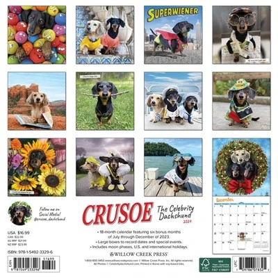 Willow Creek Press 2024 Wall Calendar 12″x12″ Crusoe The Celebrity Dachshund