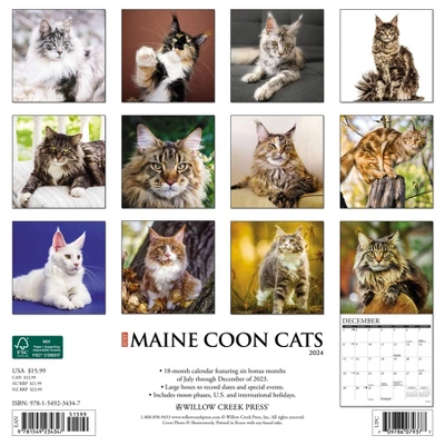 Willow Creek Press 2024 Wall Calendar 12″x12″ Just Maine Coon Cats